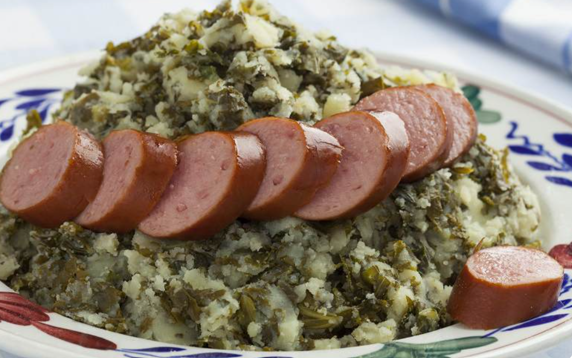 Stampotul: e un fel de piure mai brut așa, cu cartofi, kale, fasole sau varză fierte, pe care le zdrobesc parțial și le mănâncă cu cârnat, carne friptă sau chiftele. Îi pot da cu indulgență un 4 din 10, dacă e bine făcut. Am gătit și eu acasă, a ieșit bun, nimic de zis, dar nimic special.