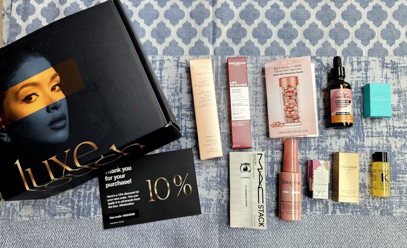 Apoi mai e cutia Luxury, în care sunt tot produse mici, dar mai multe și mai high-end. Pe asta am luat-o cadou pentru mama, care adoră să descopere chestii (cu cine oi semăna eu, nu știu, că și eu fac fix la fel). Sunt 10 produse de la MAC, Maroccan Oil, Kerastasse, Elizabeth Arden, Yves Rocher, costă (momentan) 261 de lei.