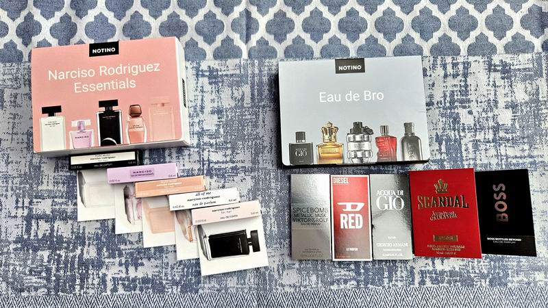 Una dintre revelații pentru mine au fost cutiile cu samples de parfum. Nici nu știam că există așa ceva! Costă 50, 60 de lei una și înăuntru ai 5-6 mostre de parfum sau creme de la un singur brand sau de la mai multe. Așa vezi ce ți se potrivește, în ritmul tău. Eu una nu pot încerca produse din magazine, mi se face greață de la mirosul de parfumuri amestecate.
